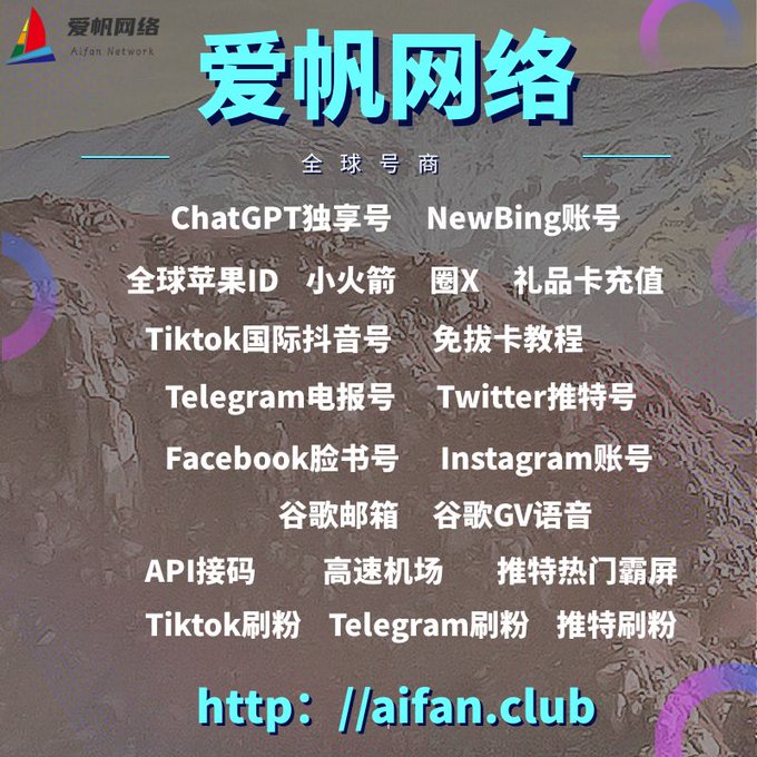 ChatGPT账号 美区id 飞机账号 苹果id Tiktok账号 推特账号 脸书账号 ins账号