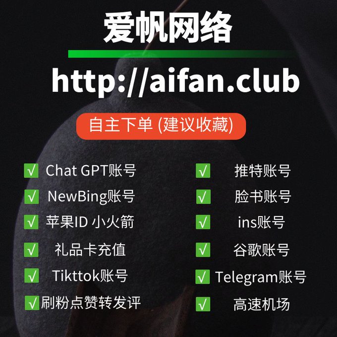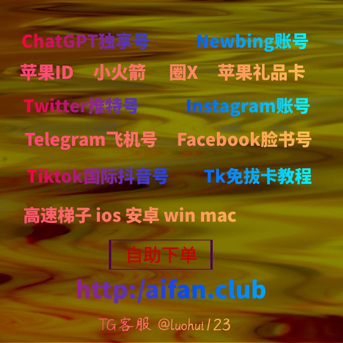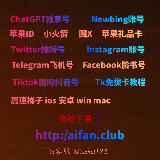 ChatGPT账号 美区id 飞机账号 苹果id Tiktok账号 推特账号 脸书账号 ins账号