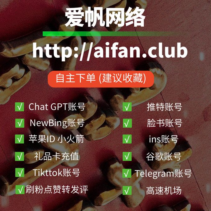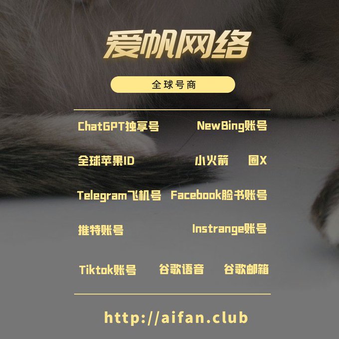 ChatGPT账号 美区id 飞机账号 苹果id Tiktok账号 推特账号 脸书账号 ins账号