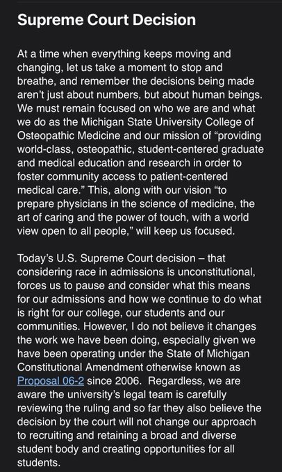 Michigan State University's response to the recent