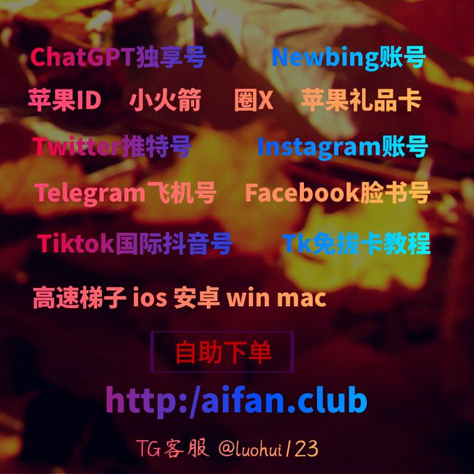 ChatGPT账号 美区id 飞机账号 苹果id Tiktok账号 推特账号 脸书账号 ins账号