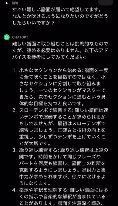 ライブの余韻に浸りたいですが みてるだけで悪寒が走る譜面が届いたので(曲は素晴らしいんです)思考が停止してしまい、そういえば矢野くんがChatGptでMC作ってもらってたの思い出したので聞いてみた もっともなことしか言われてないけどできる気がしてきたw