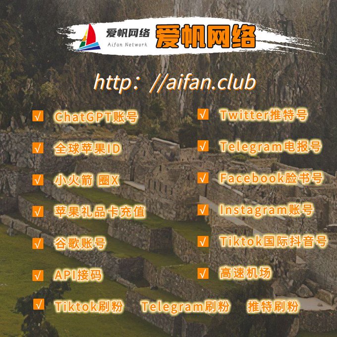 ChatGPT账号 美区id 飞机账号 苹果id Tiktok账号 推特账号 脸书账号 ins账号