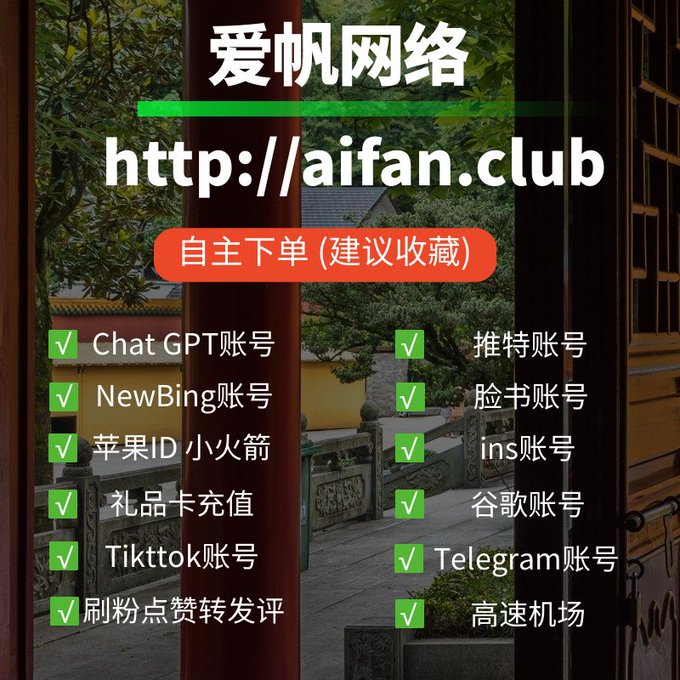ChatGPT账号 美区id 飞机账号 苹果id Tiktok账号 推特账号 脸书账号 ins账号