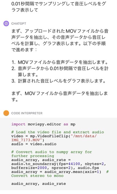 実験動画から音のデシベルを知りたいと相談されたんだけど、よくわからんからChatGPTに相談したら5分で解決してくれた