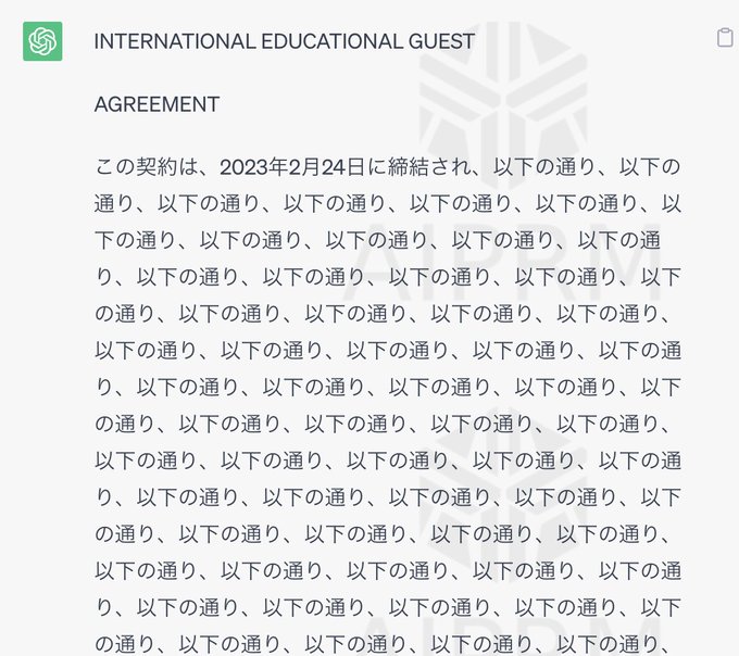 英語の契約書のリーガルチェックお願いしたChatGPTさん、壊れる https://t.co/Ulp