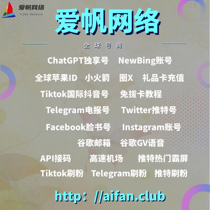 ChatGPT账号 美区id 飞机账号 苹果id 推特账号 Tiktok账号 脸书账号 ins账号