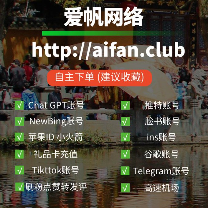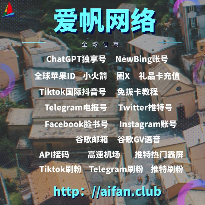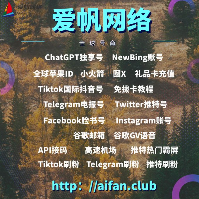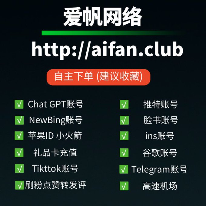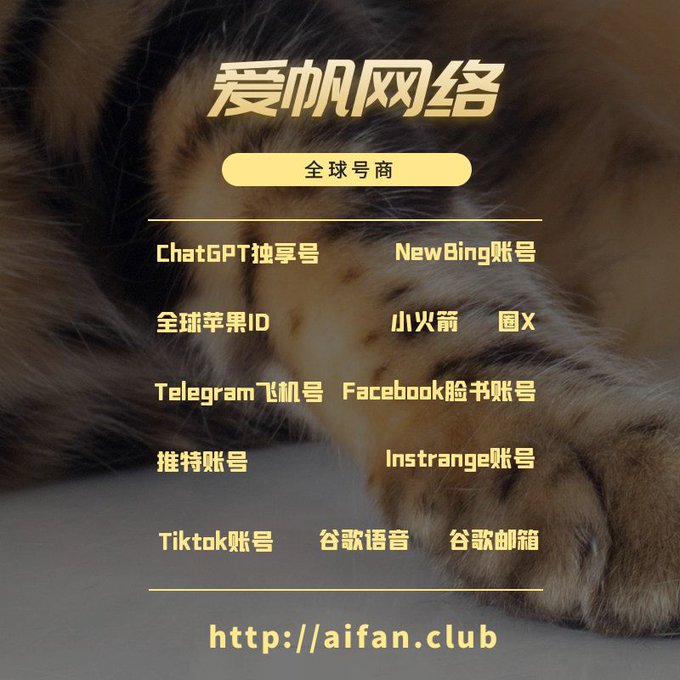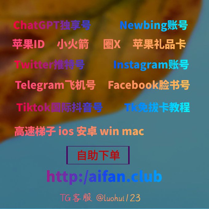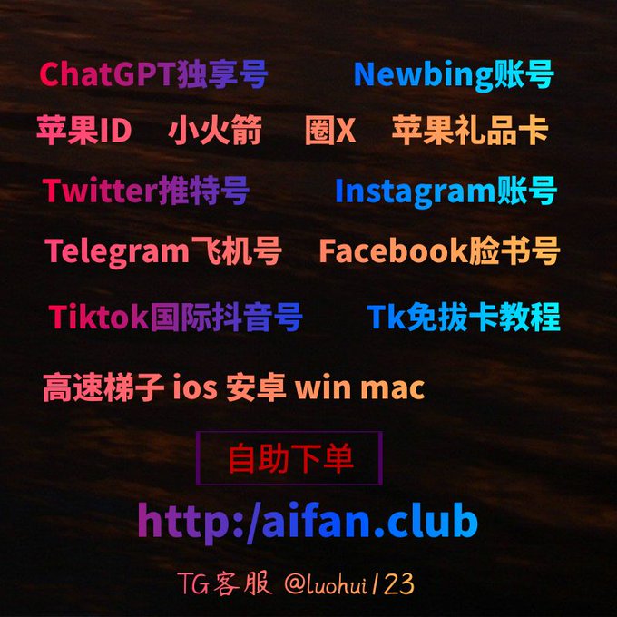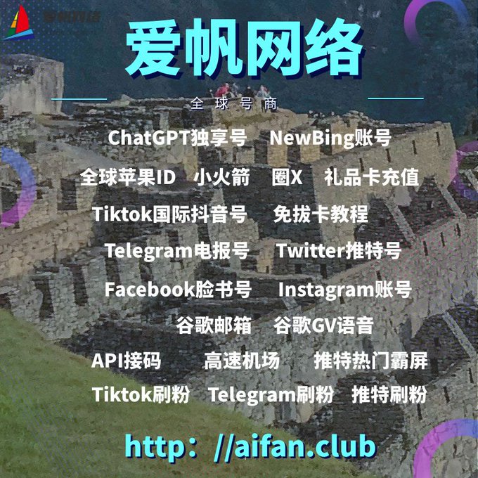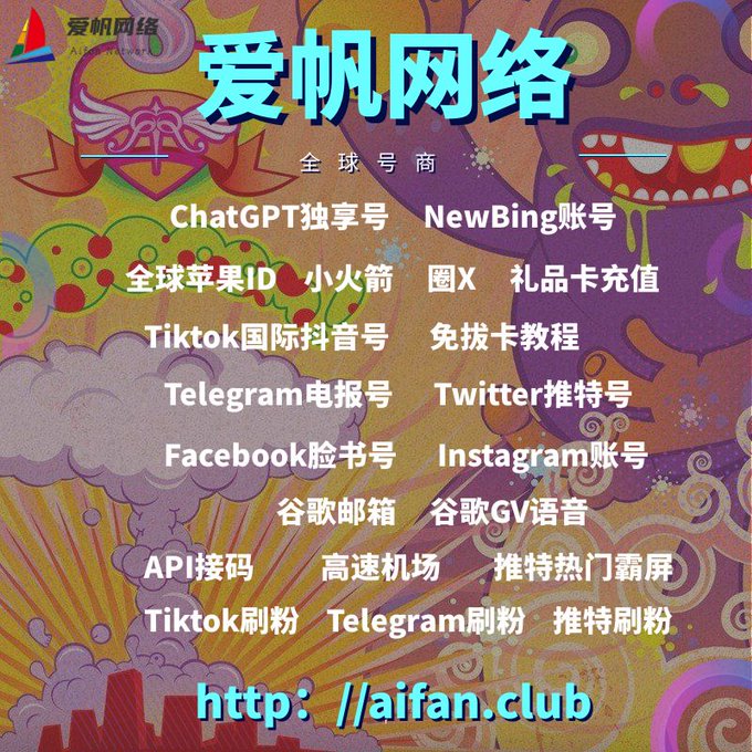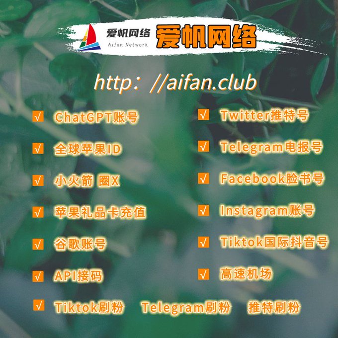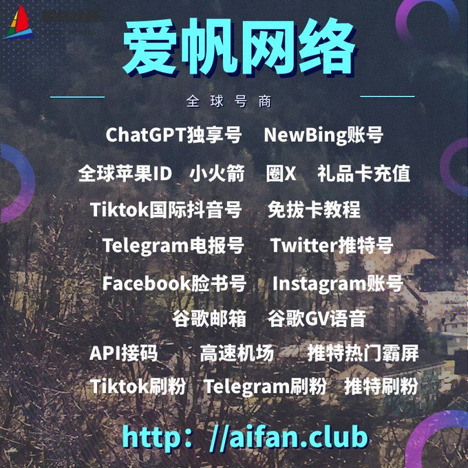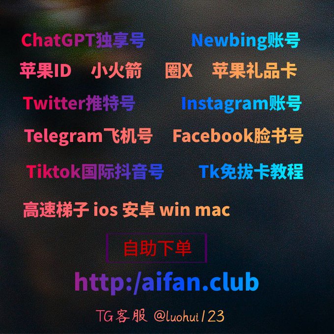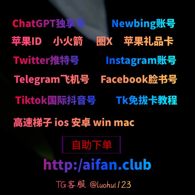 ChatGPT账号 美区id 飞机账号 苹果id Tiktok账号 推特账号 脸书账号 ins账号