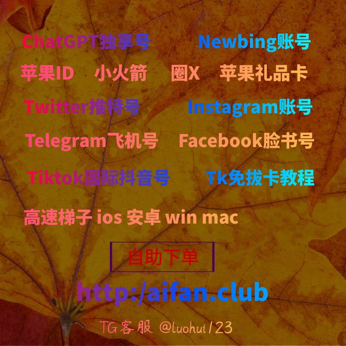 ChatGPT账号 美区id 飞机账号 苹果id Tiktok账号 推特账号 脸书账号 ins账号