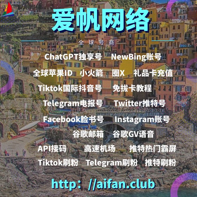 ChatGPT账号 美区id 飞机账号 苹果id Tiktok账号 推特账号 脸书账号 ins账号