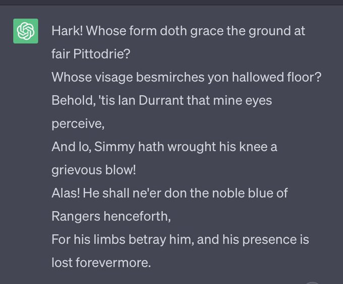 I wrote the Ian Durrant/Simmie chant into ChatGPT and
