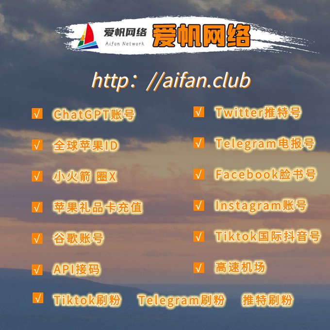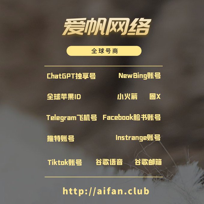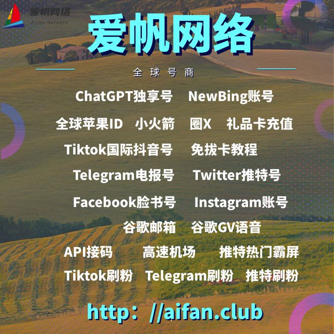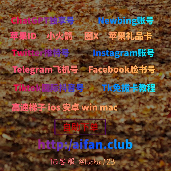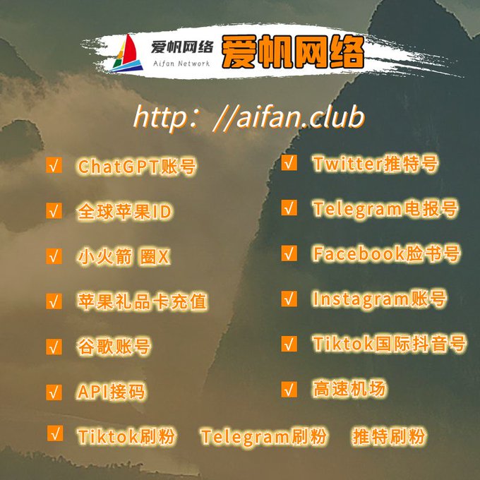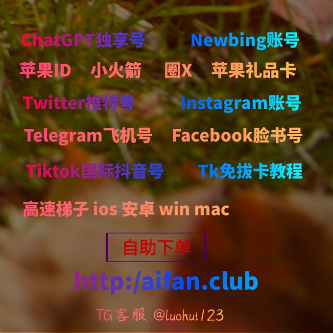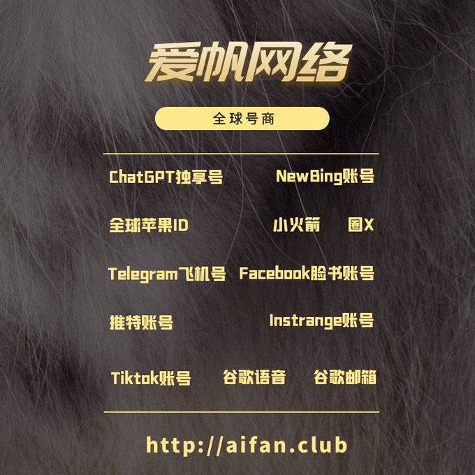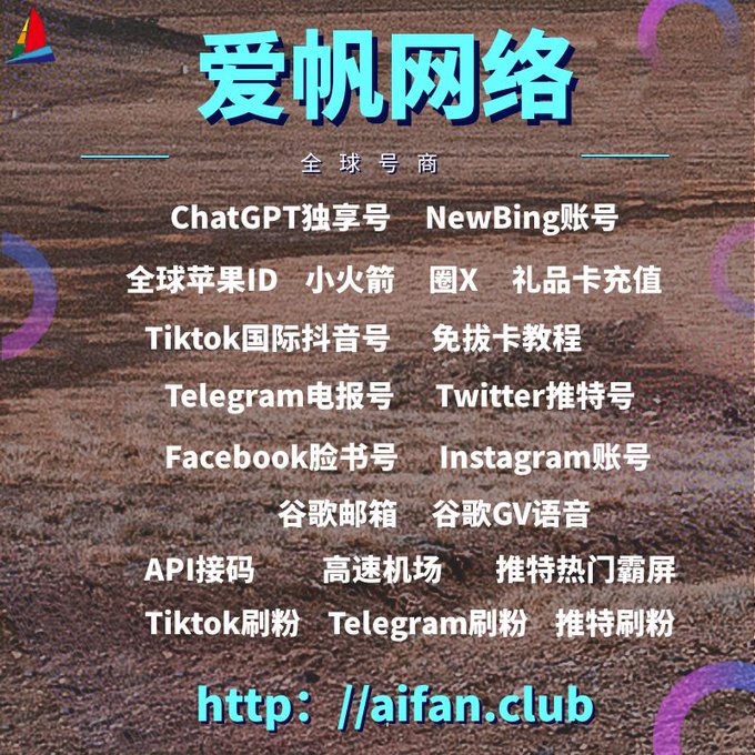 ChatGPT账号 美区id 飞机账号 苹果id Tiktok账号 推特账号 脸书账号 ins账号