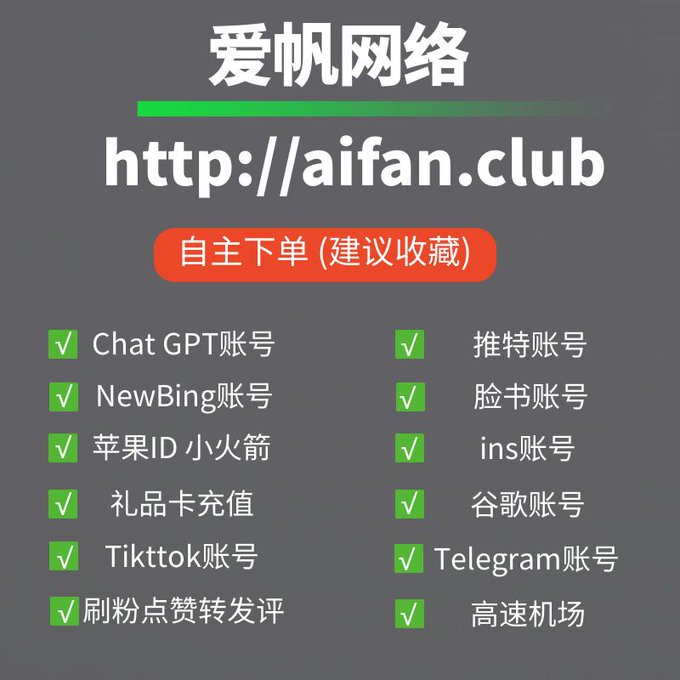 ChatGPT账号 美区id 飞机账号 苹果id Tiktok账号 推特账号 脸书账号 ins账号