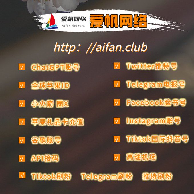 ChatGPT账号 美区id 飞机账号 苹果id Tiktok账号 推特账号 脸书账号 ins账号