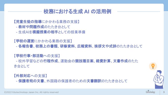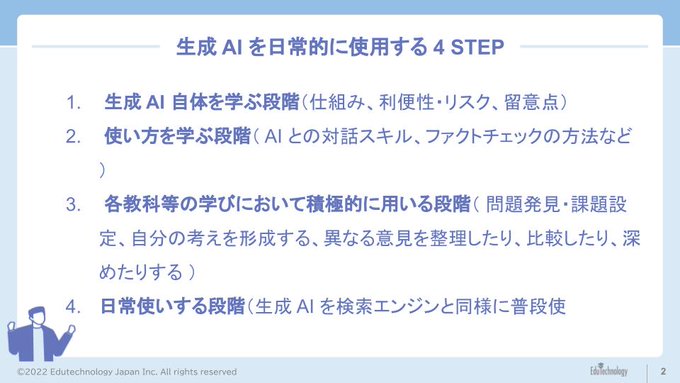 7 月に文部科学省から通知された 「初等中等教育段階における生成 AI の利用に関する暫定的なガイドライン」