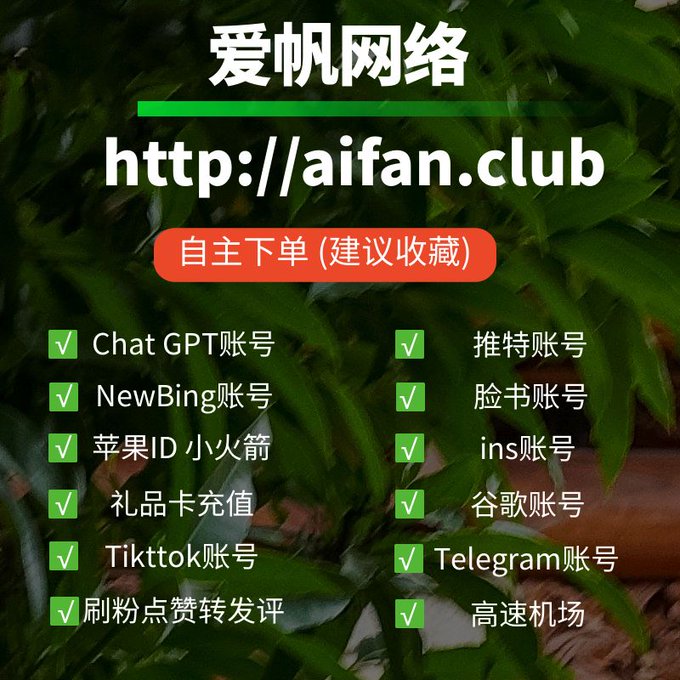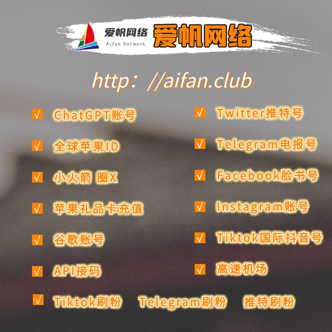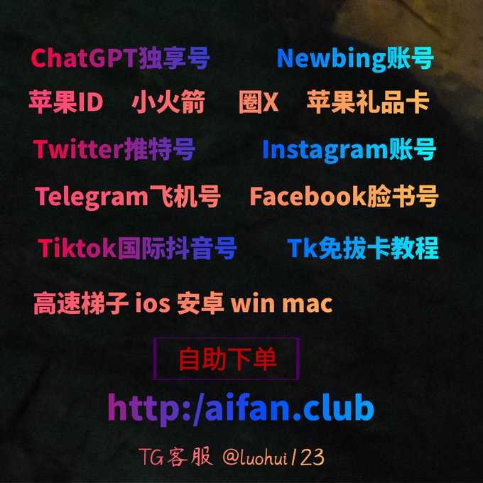 ChatGPT账号 美区id 飞机账号 苹果id Tiktok账号 推特账号 脸书账号 ins账号