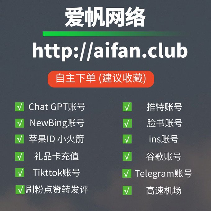 ChatGPT账号 美区id 飞机账号 苹果id Tiktok账号 推特账号 脸书账号 ins账号