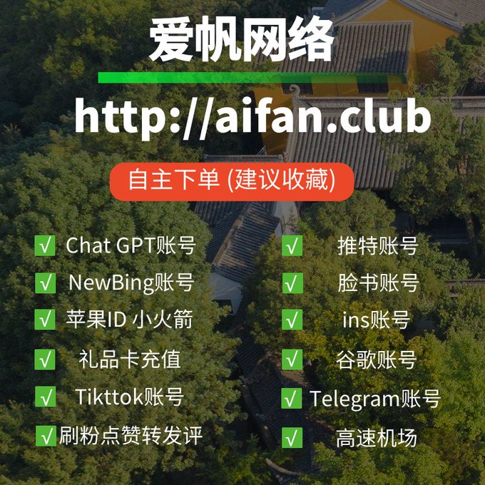 ChatGPT账号 美区id 飞机账号 苹果id Tiktok账号 推特账号 脸书账号 ins账号