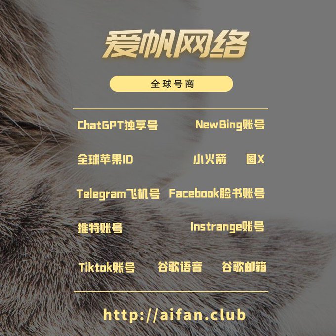 ChatGPT账号 美区id 飞机账号 苹果id Tiktok账号 推特账号 脸书账号 ins账号