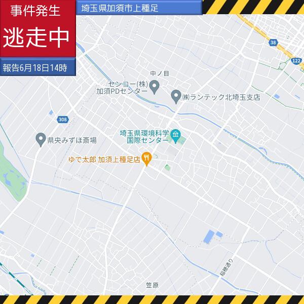 【速報】加須市上種足地内で20代の男性が包丁を所持したまま行方不明。外出避け施錠を。 #逃走中 #aiコロナちゃん