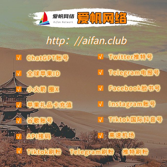 ChatGPT账号 美区id 飞机账号 苹果id Tiktok账号 推特账号 脸书账号 ins账号