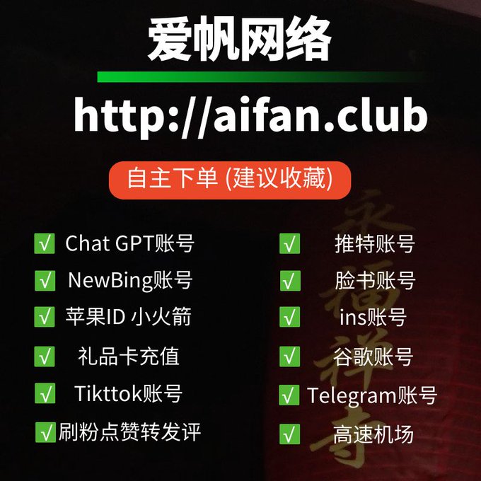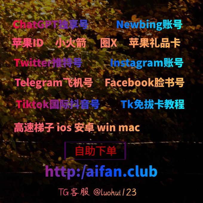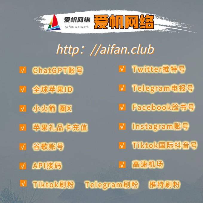 ChatGPT账号 美区id 飞机账号 苹果id Tiktok账号 推特账号 脸书账号 ins账号