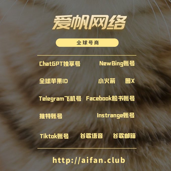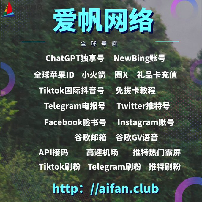 ChatGPT账号 美区id 飞机账号 苹果id Tiktok账号 推特账号 脸书账号 ins账号