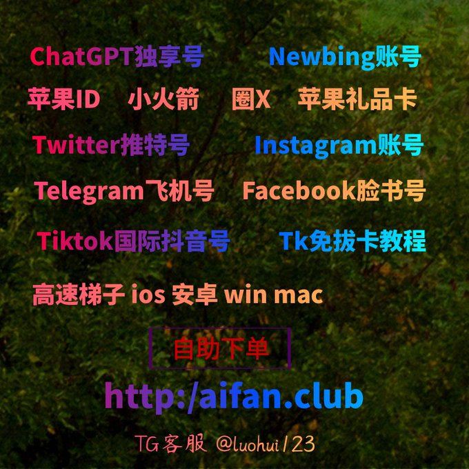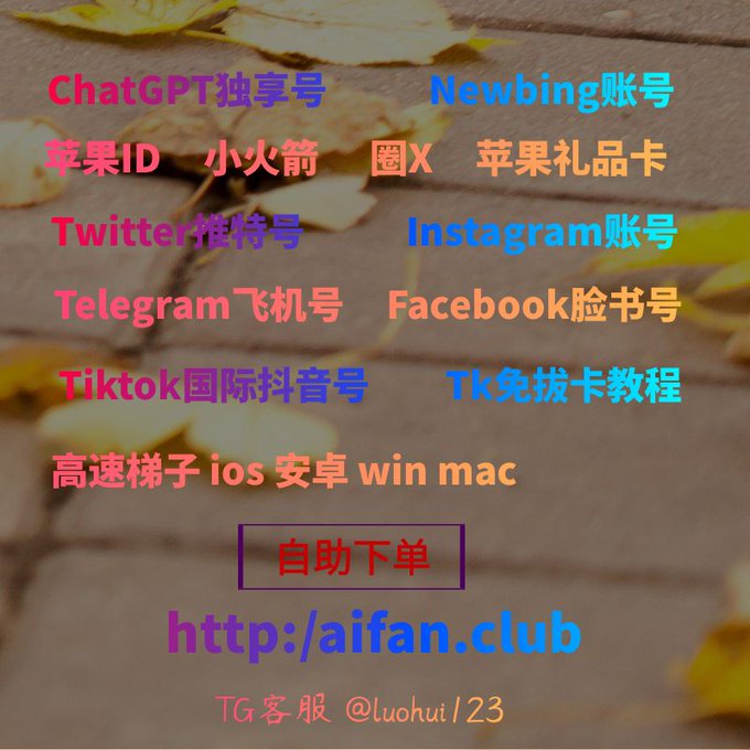 ChatGPT账号 美区id 飞机账号 苹果id Tiktok账号 推特账号 脸书账号 ins账号