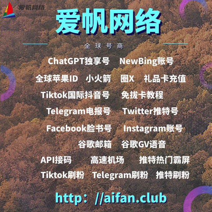 ChatGPT账号 美区id 飞机账号 苹果id Tiktok账号 推特账号 脸书账号 ins账号