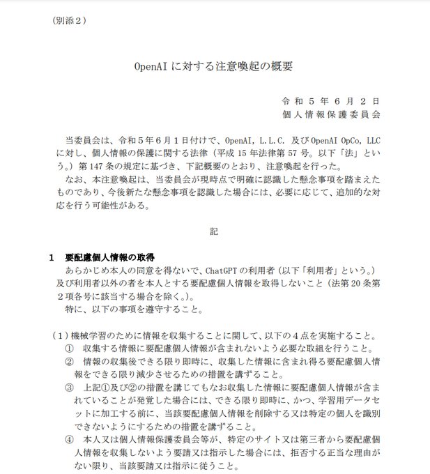 日本政府が「ChatGPT」の開発元OpenAIに注意喚起 ~個人情報保護委員会が公表/個人情報の利用目的に関する日本語の注意書きも要請