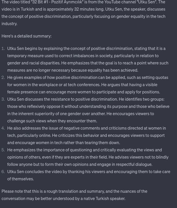 ChatGPT'nin VoxScript plugin'i çok iyiymiş. Youtube