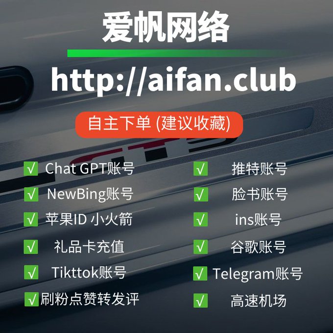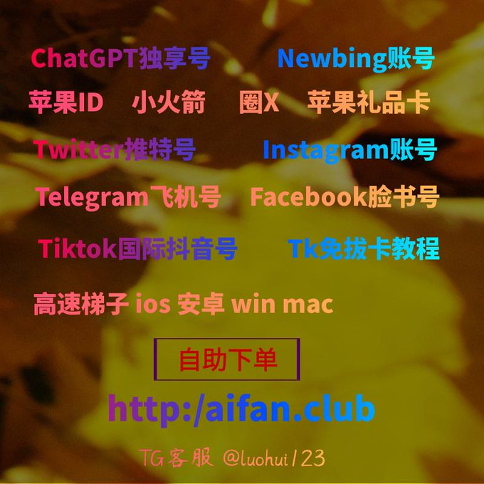 ChatGPT账号 美区id 飞机账号 苹果id 推特账号 Tiktok账号 脸书账号 ins账号
