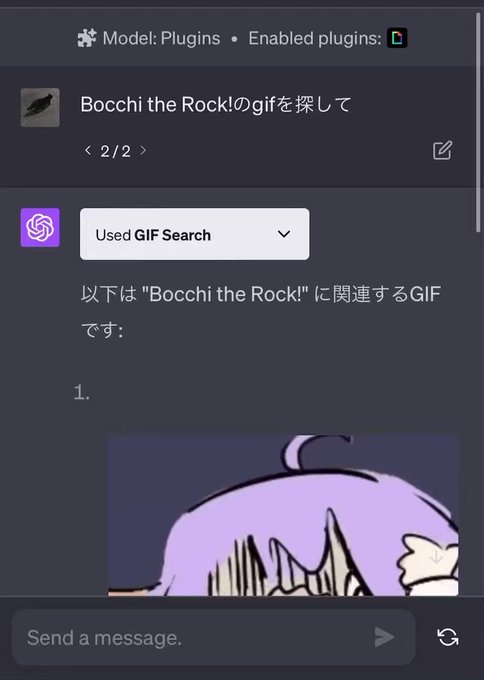 ChatGPTに「GIF Search」ってgifを検索してくれるプラグインできてた https://t