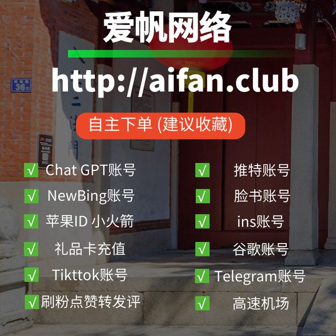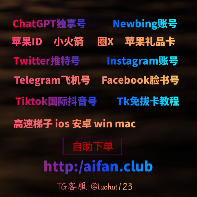 ChatGPT账号 美区id 飞机账号 苹果id 推特账号 Tiktok账号 脸书账号 ins账号