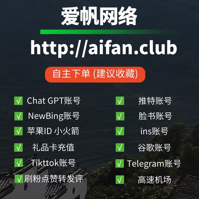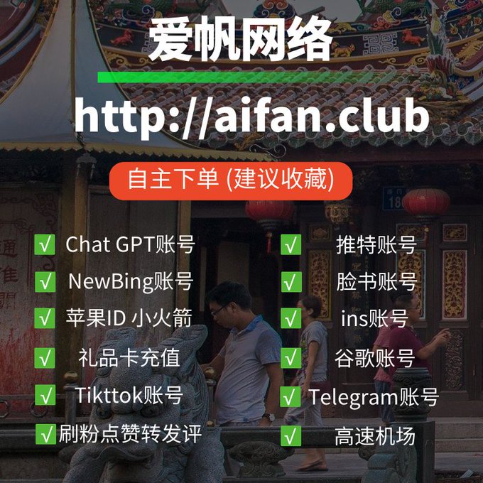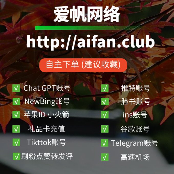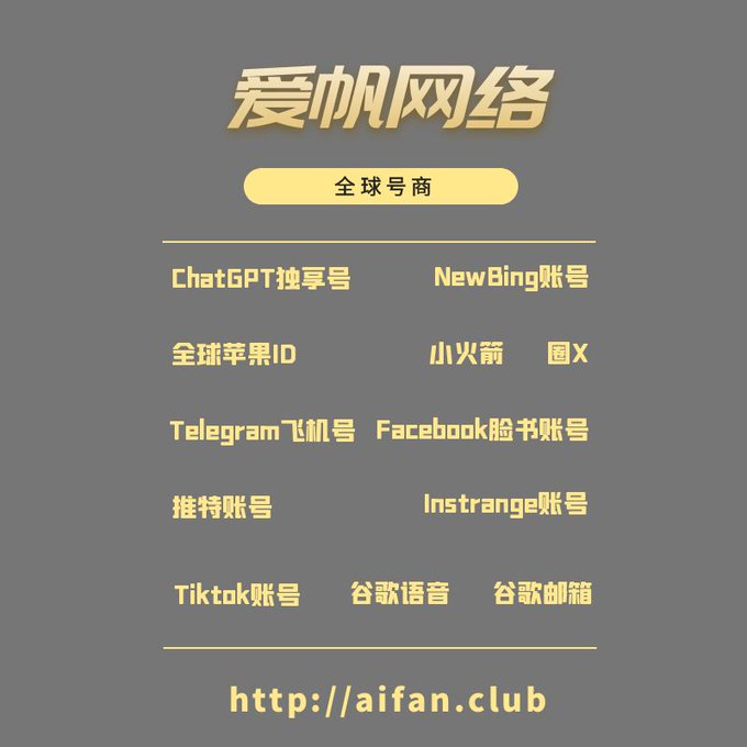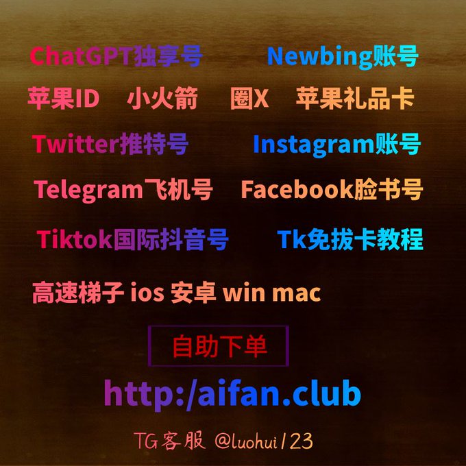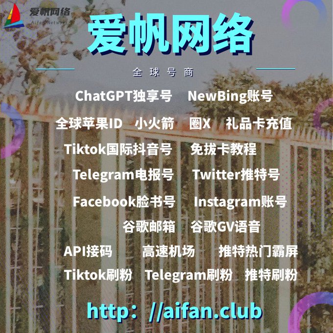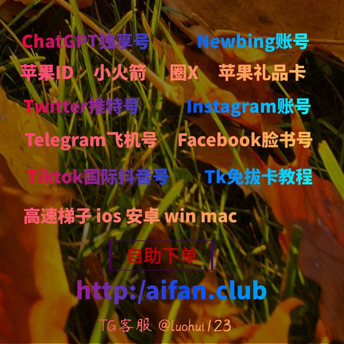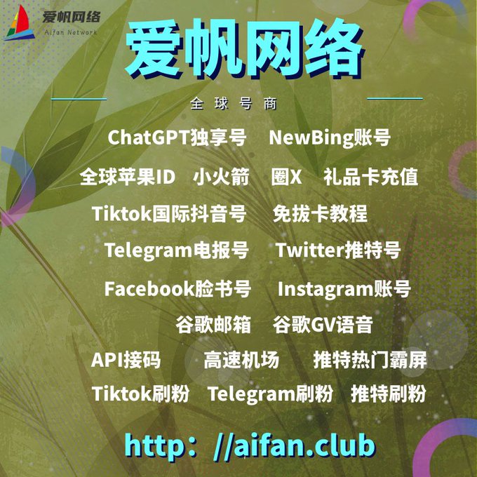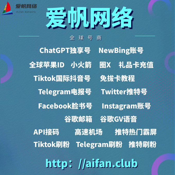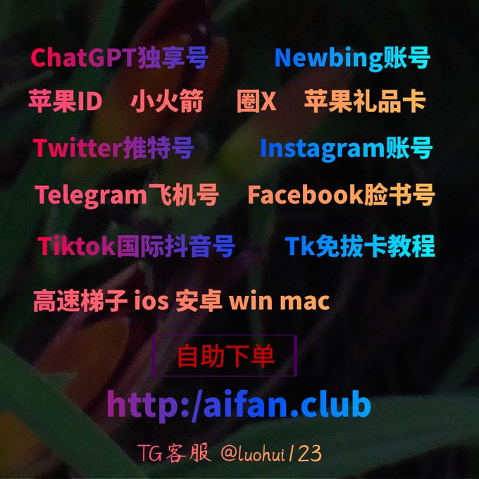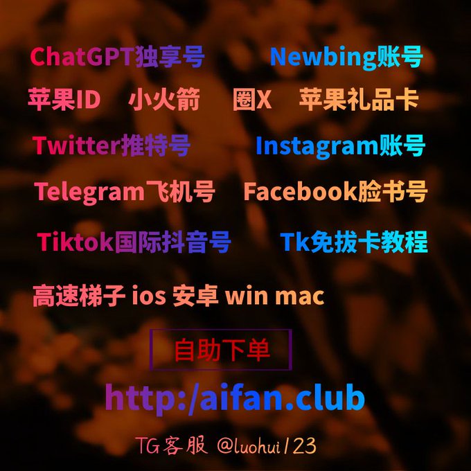 ChatGPT账号 美区id 飞机账号 苹果id Tiktok账号 推特账号 脸书账号 ins账号