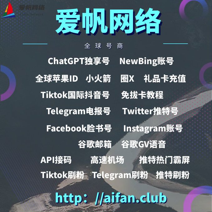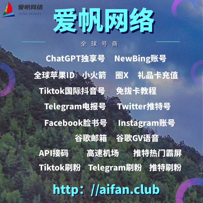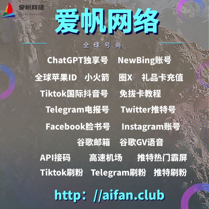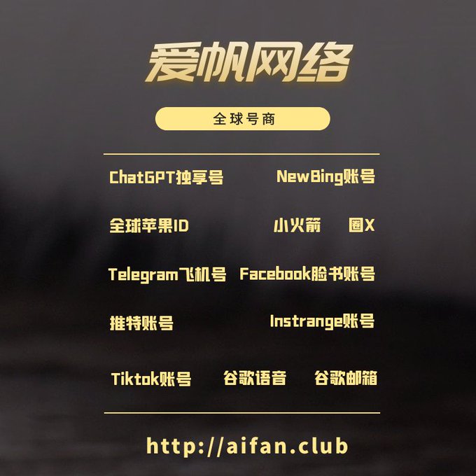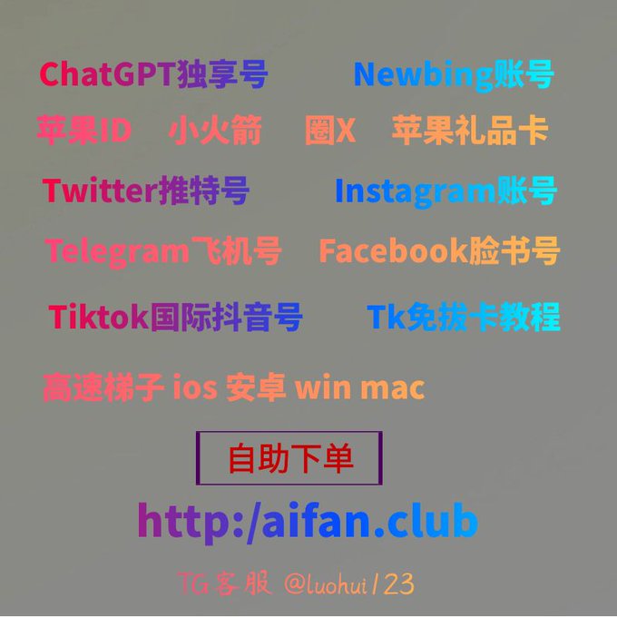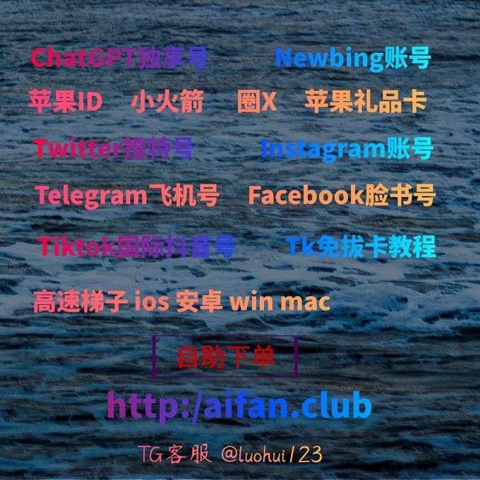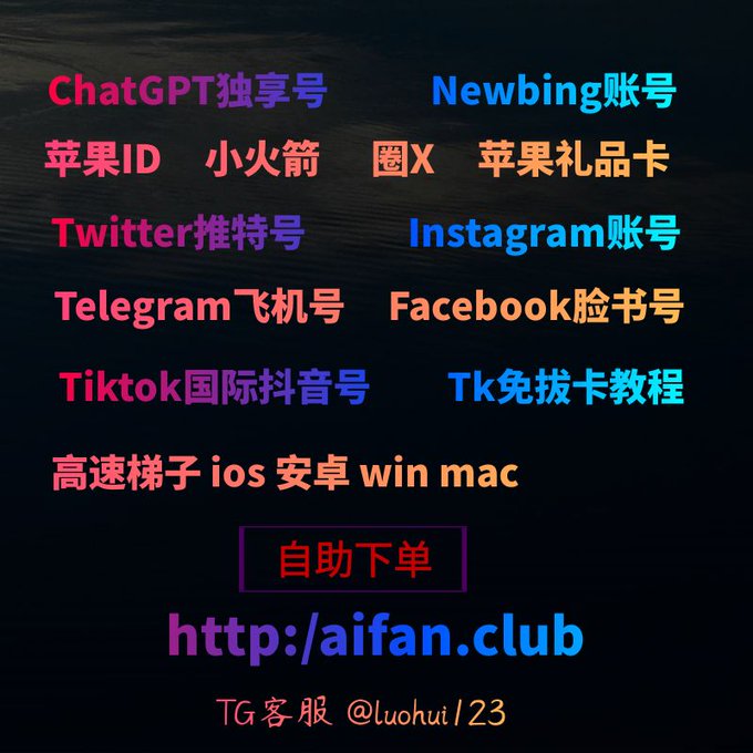 ChatGPT账号 美区id 飞机账号 苹果id Tiktok账号 推特账号 脸书账号 ins账号