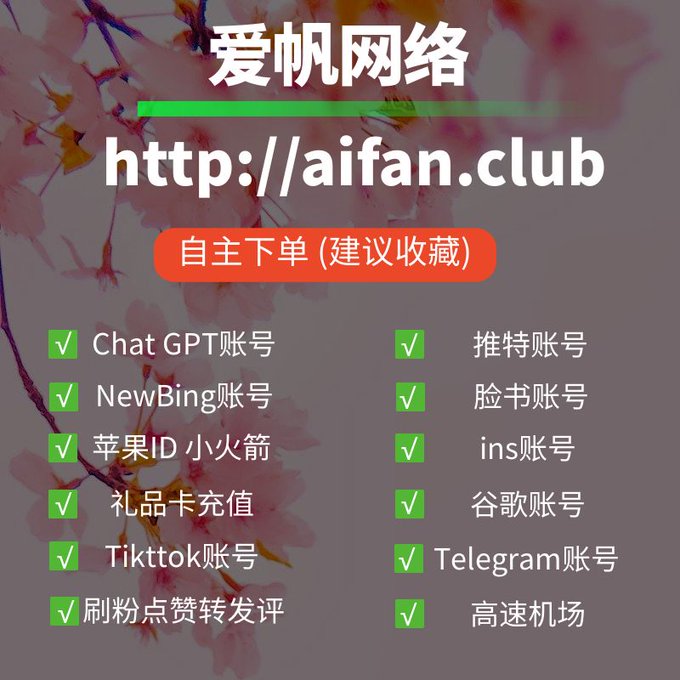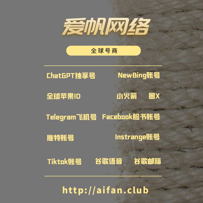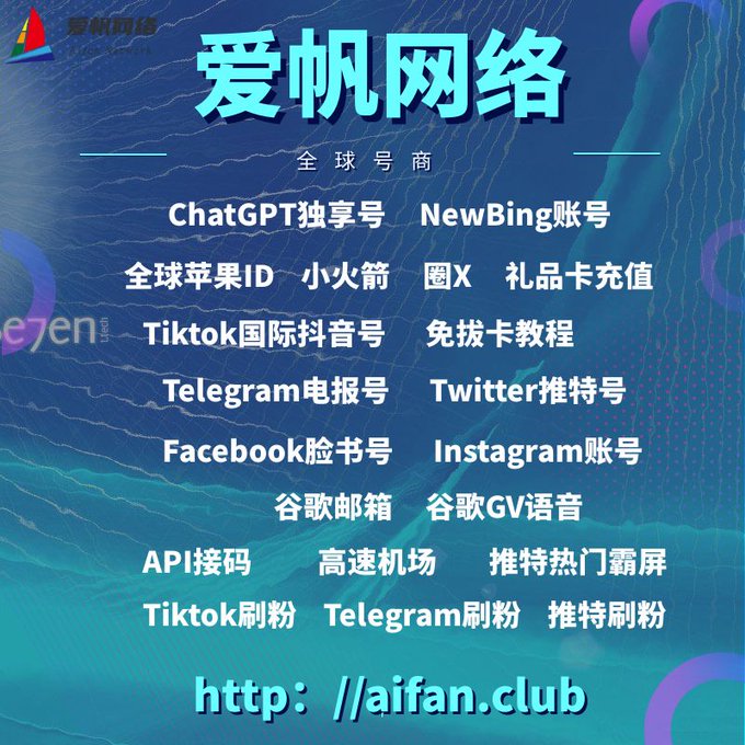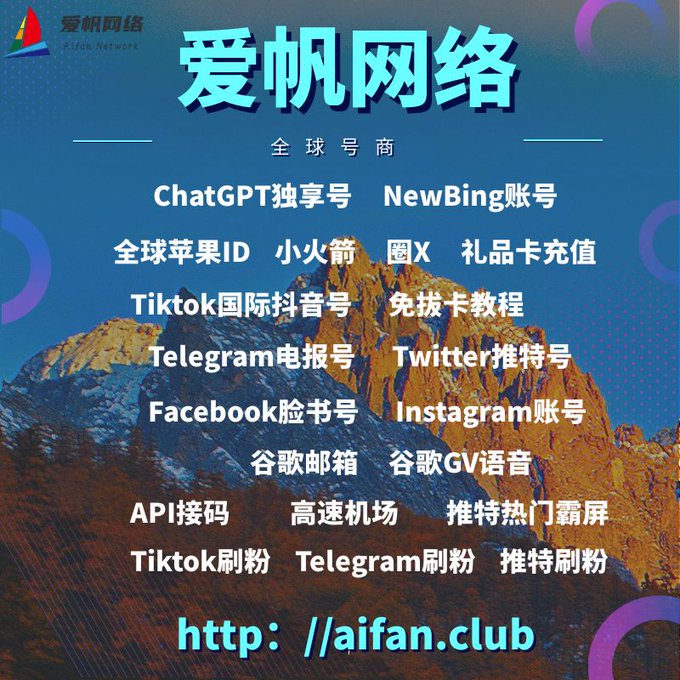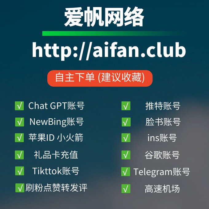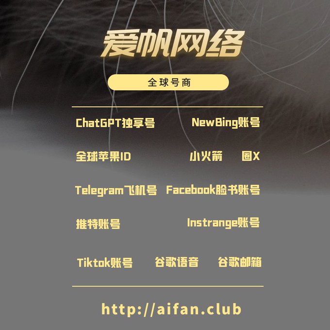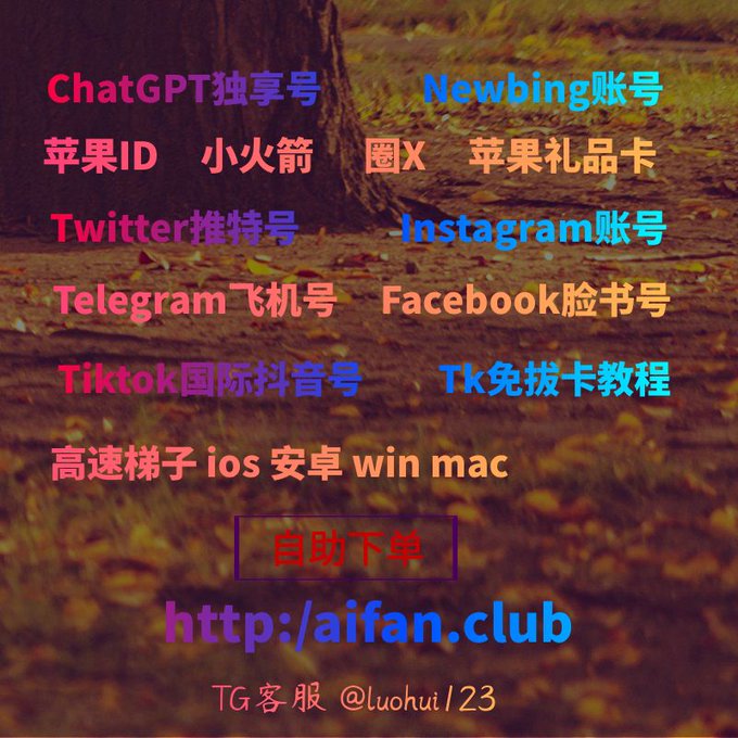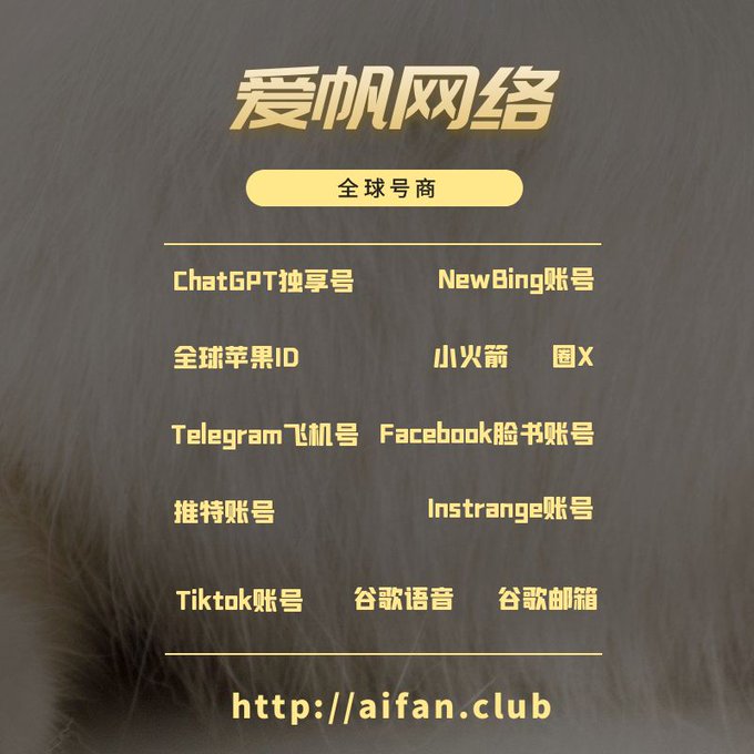 ChatGPT账号 美区id 飞机账号 苹果id Tiktok账号 推特账号 脸书账号 ins账号