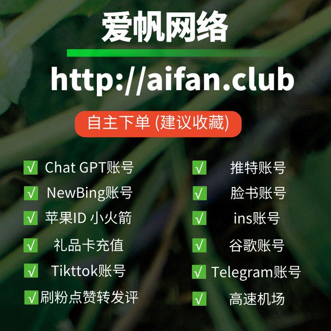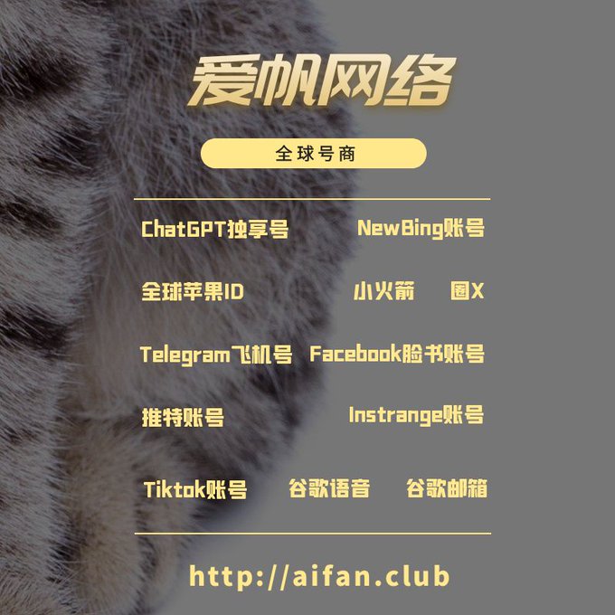 ChatGPT账号 美区id 飞机账号 苹果id Tiktok账号 推特账号 脸书账号 ins账号