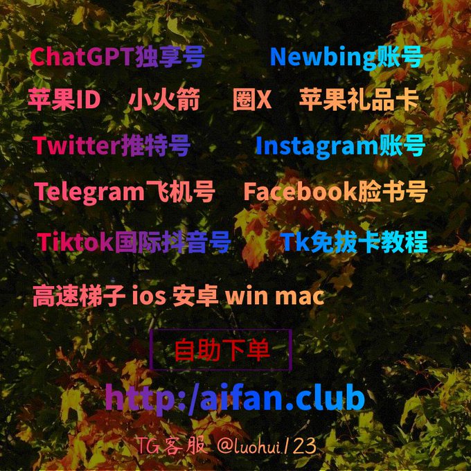 ChatGPT账号 美区id 飞机账号 苹果id Tiktok账号 推特账号 脸书账号 ins账号