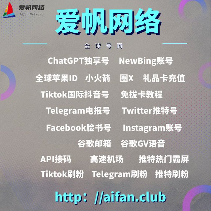 ChatGPT账号 美区id 飞机账号 苹果id Tiktok账号 推特账号 脸书账号 ins账号