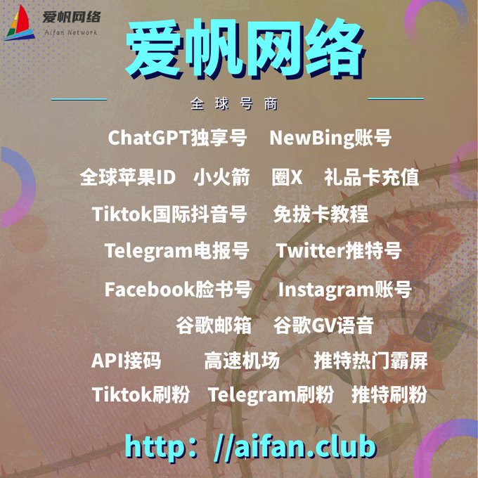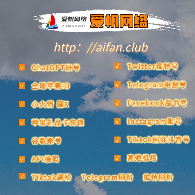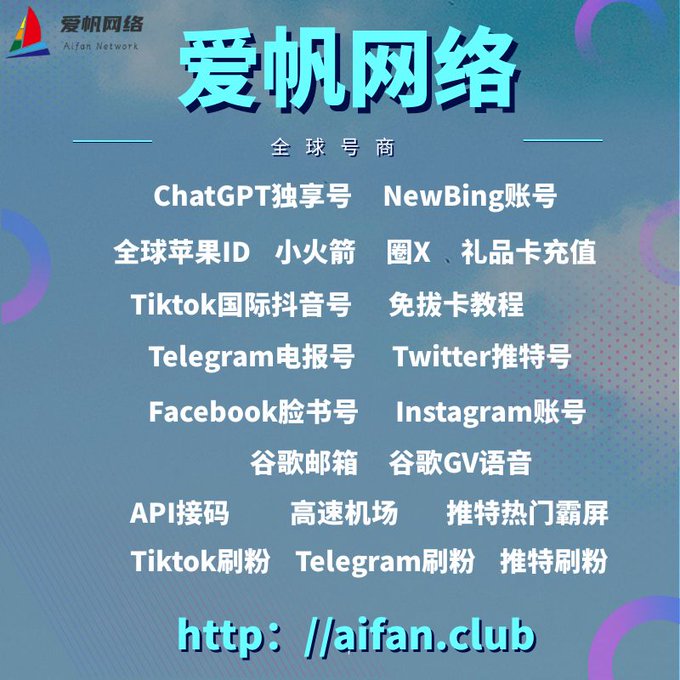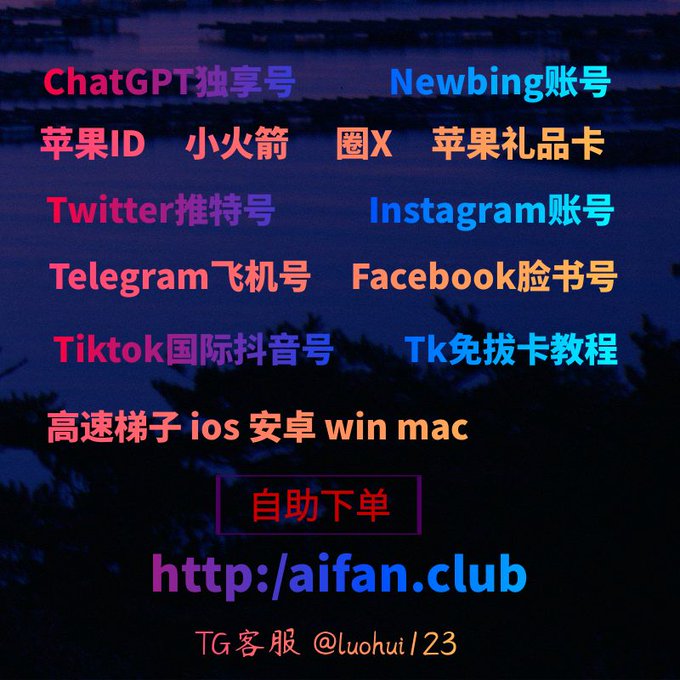 ChatGPT账号 美区id 飞机账号 苹果id 推特账号 Tiktok账号 脸书账号 ins账号