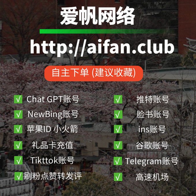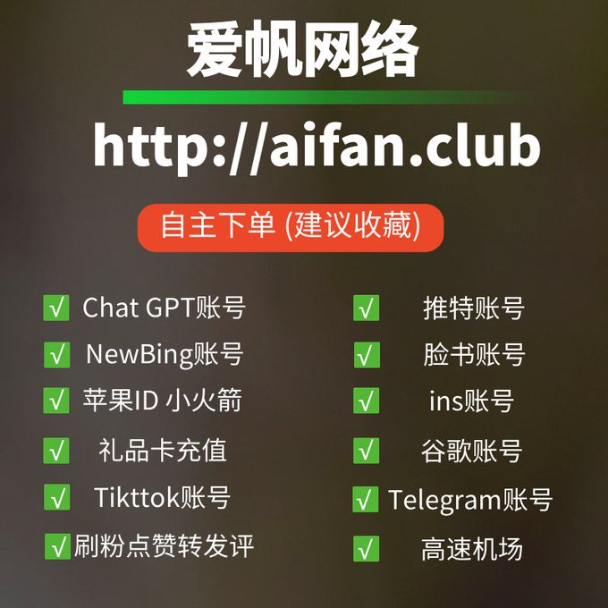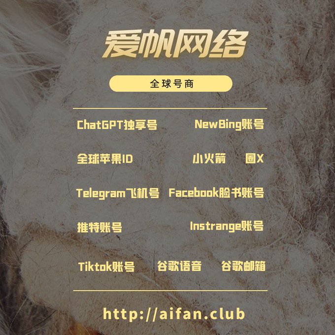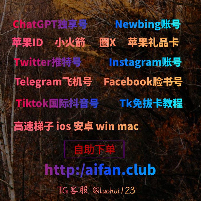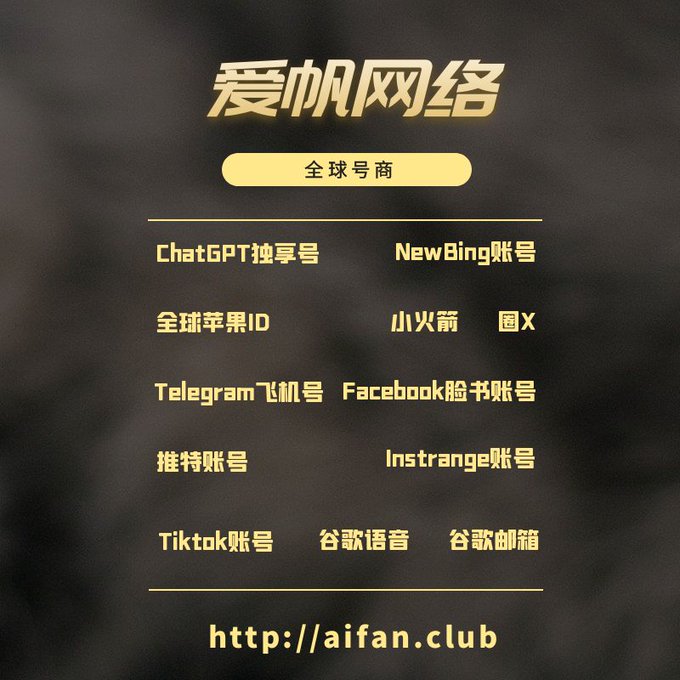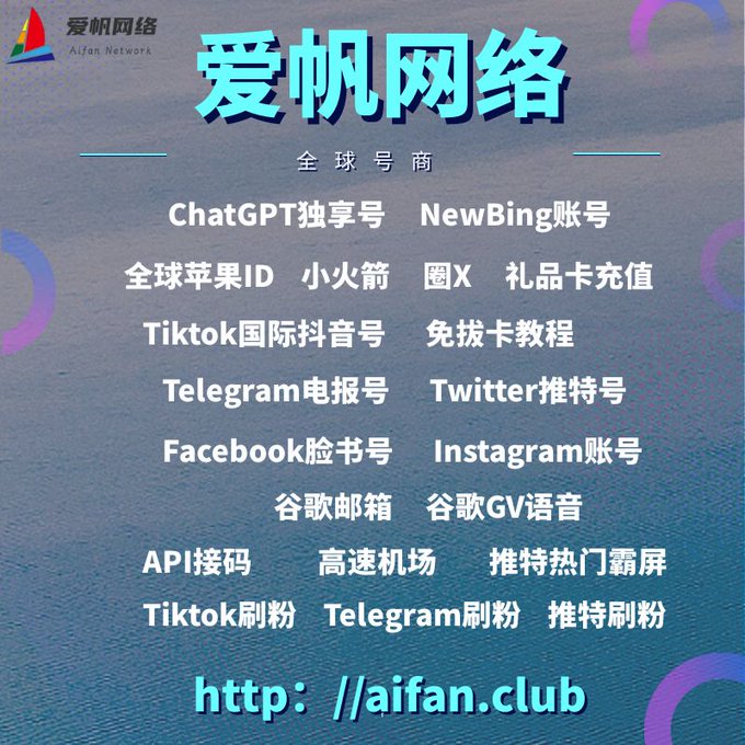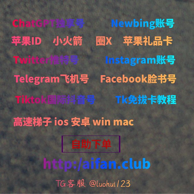 ChatGPT账号 美区id 飞机账号 苹果id Tiktok账号 推特账号 脸书账号 ins账号