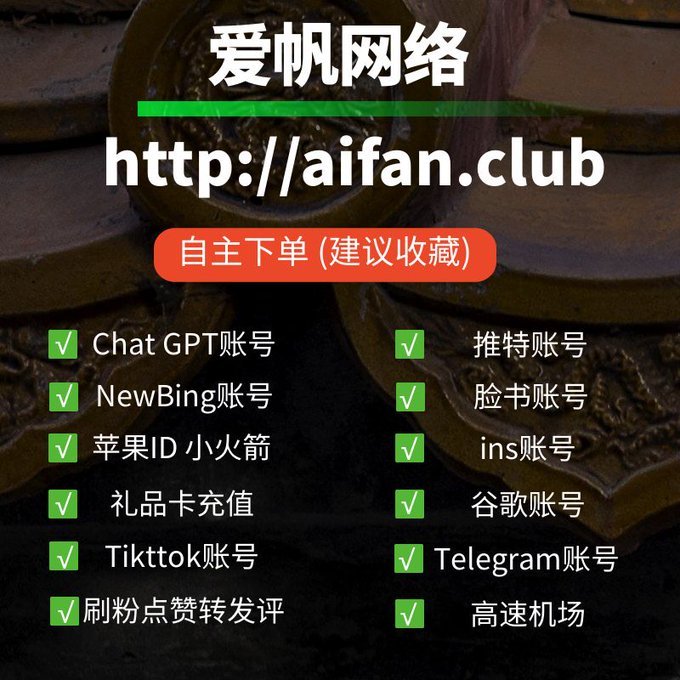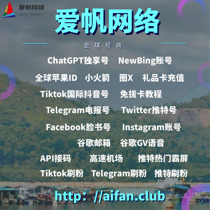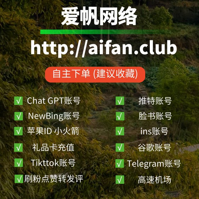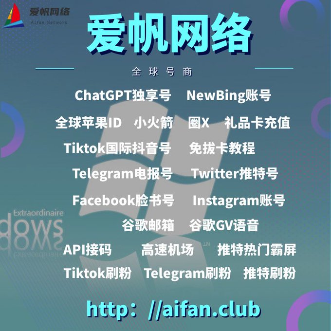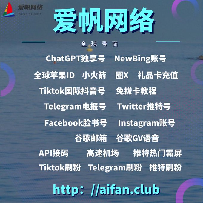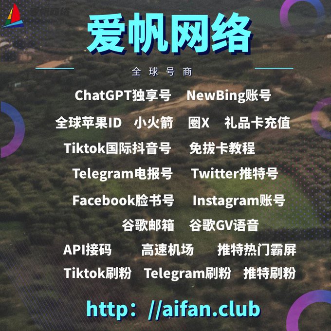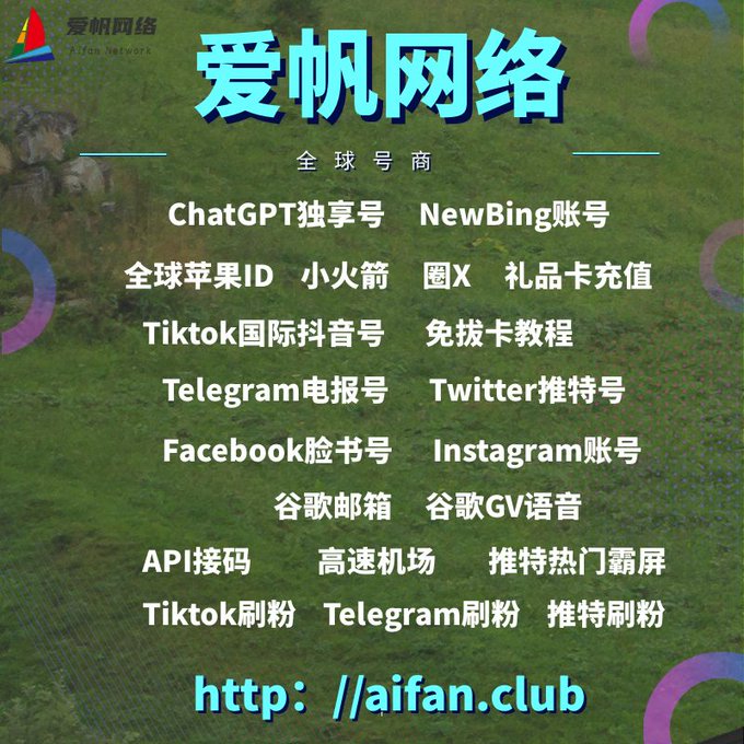ChatGPT账号 美区id 飞机账号 苹果id Tiktok账号 推特账号 脸书账号 ins账号
