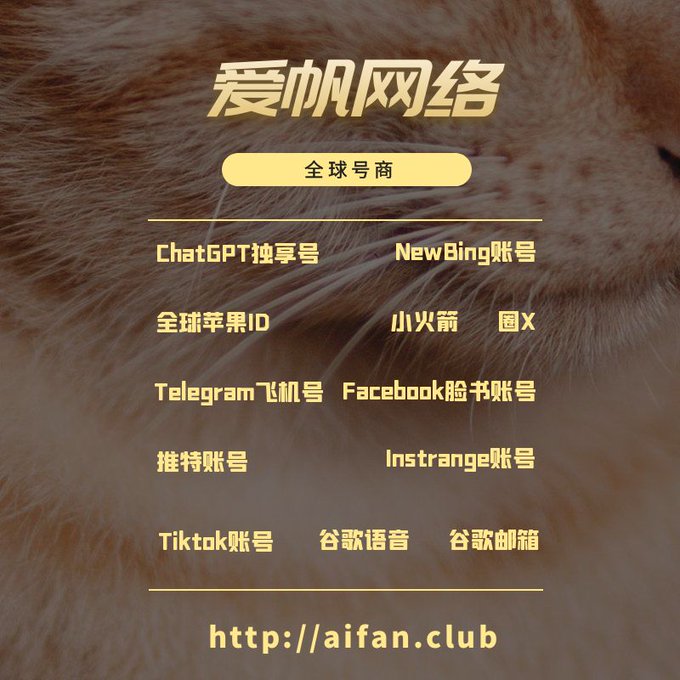 ChatGPT账号 美区id 飞机账号 苹果id 推特账号 Tiktok账号 脸书账号 ins账号