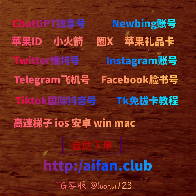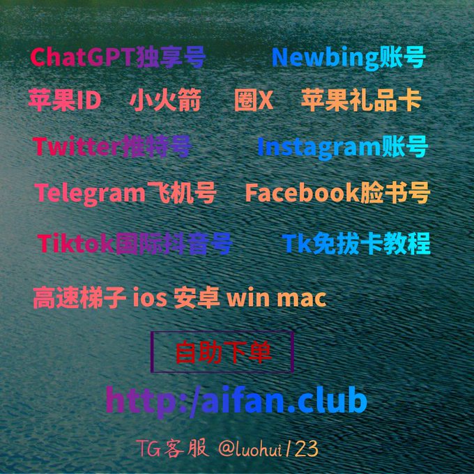 ChatGPT账号 美区id 飞机账号 苹果id Tiktok账号 推特账号 脸书账号 ins账号