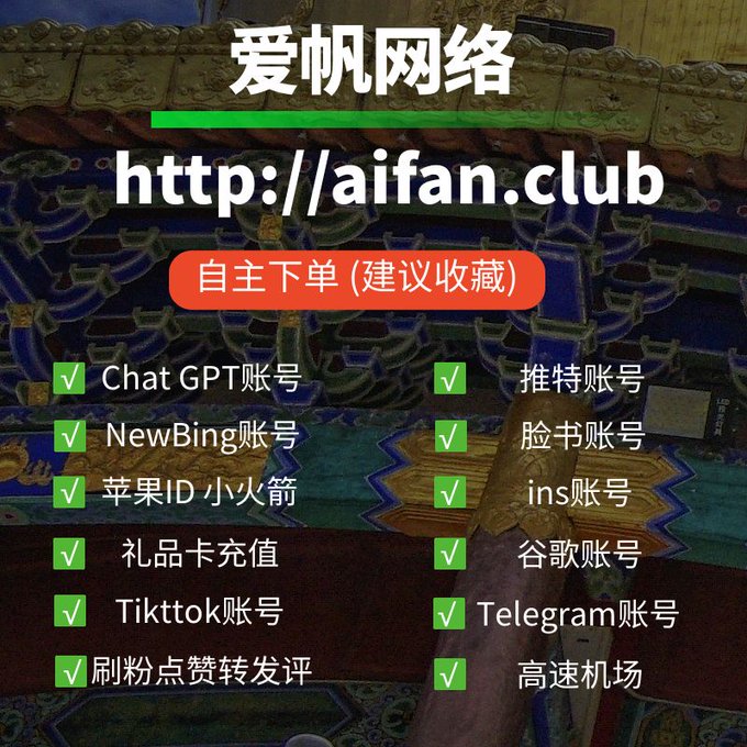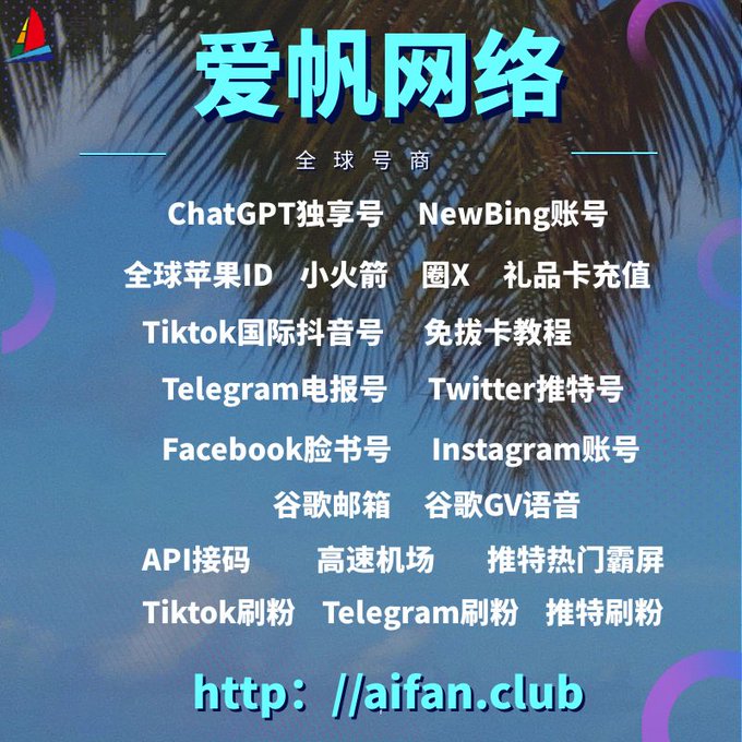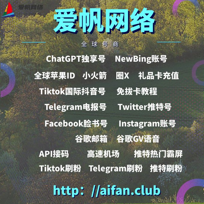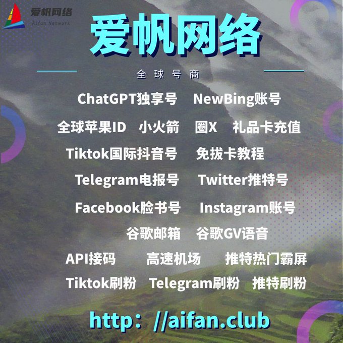 ChatGPT账号 美区id 飞机账号 苹果id 推特账号 Tiktok账号 脸书账号 ins账号