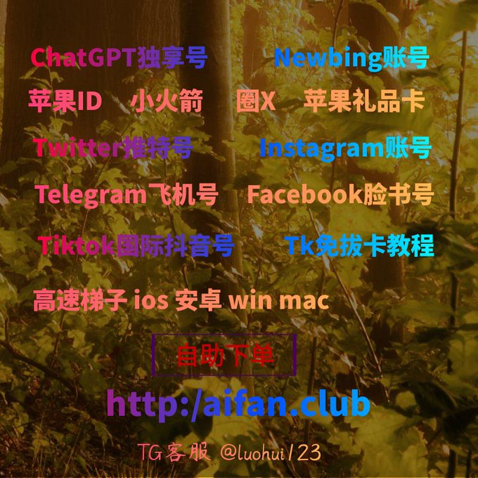 ChatGPT账号 美区id 飞机账号 苹果id Tiktok账号 推特账号 脸书账号 ins账号