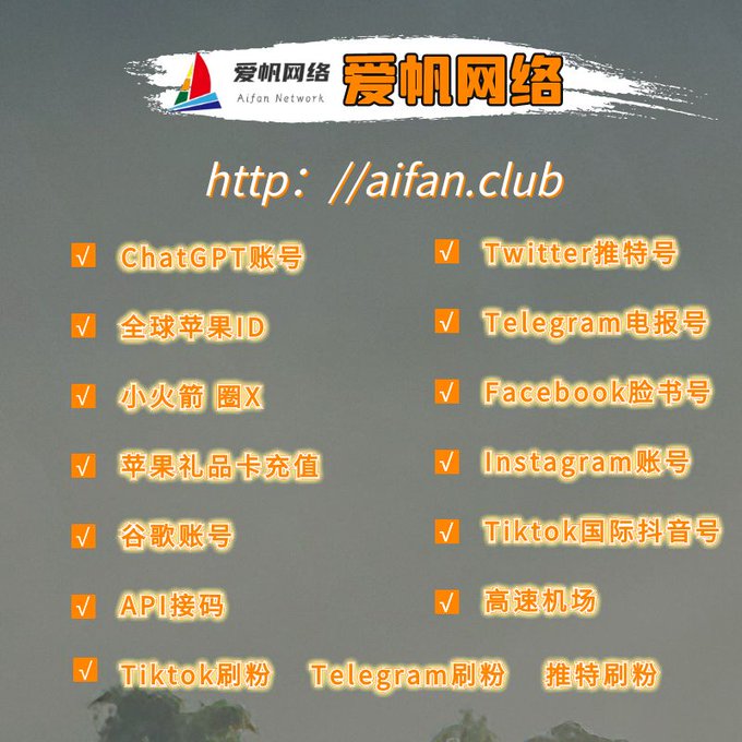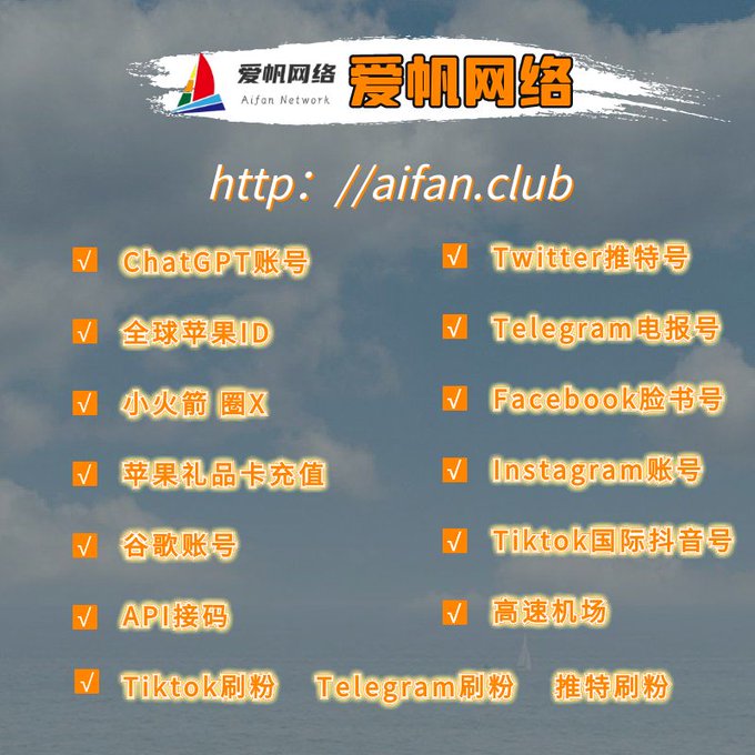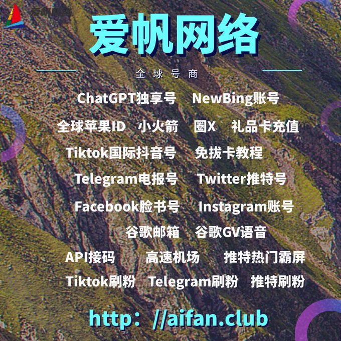 ChatGPT账号 美区id 飞机账号 苹果id Tiktok账号 推特账号 脸书账号 ins账号
