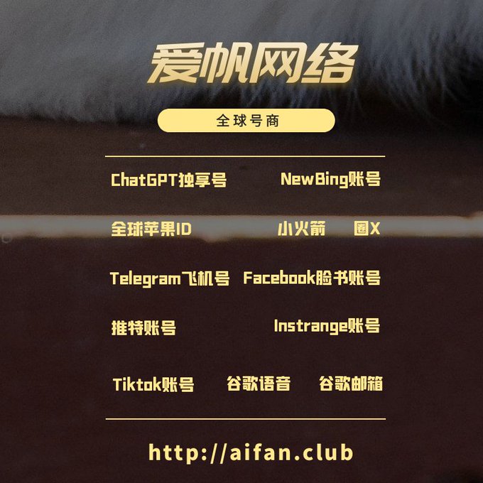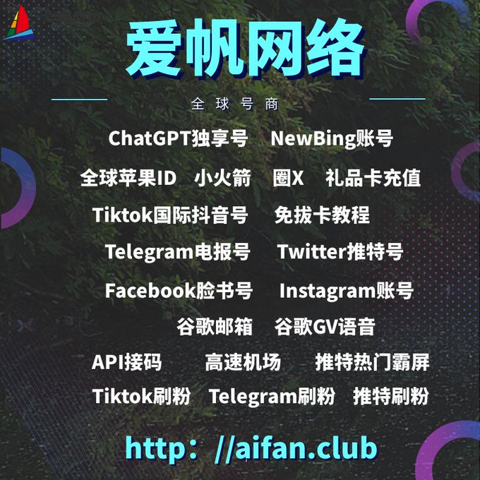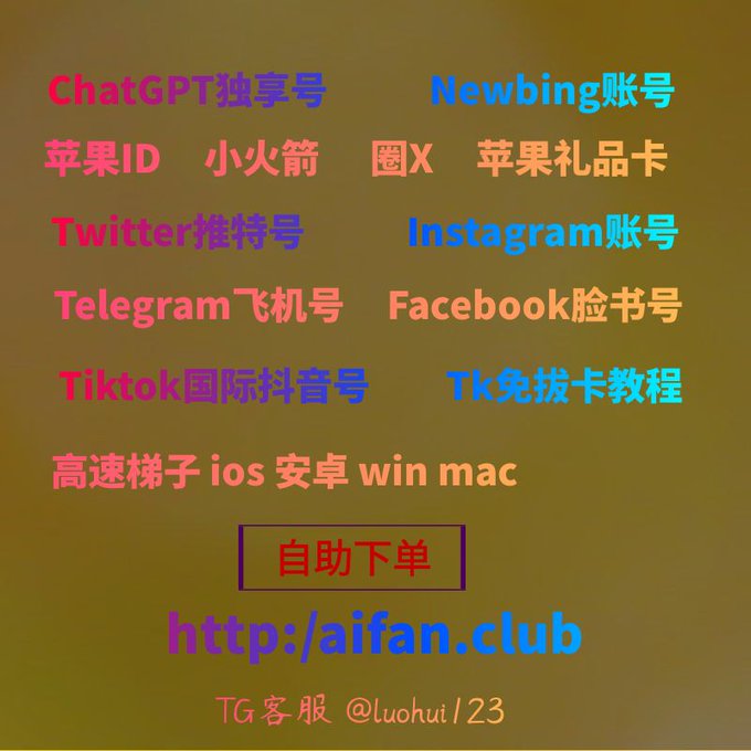 ChatGPT账号 美区id 飞机账号 苹果id Tiktok账号 推特账号 脸书账号 ins账号