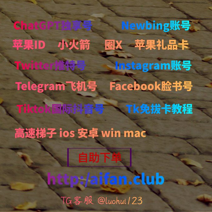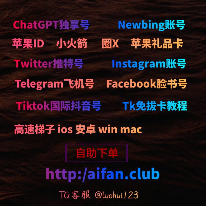 ChatGPT账号 美区id 飞机账号 苹果id Tiktok账号 推特账号 脸书账号 ins账号